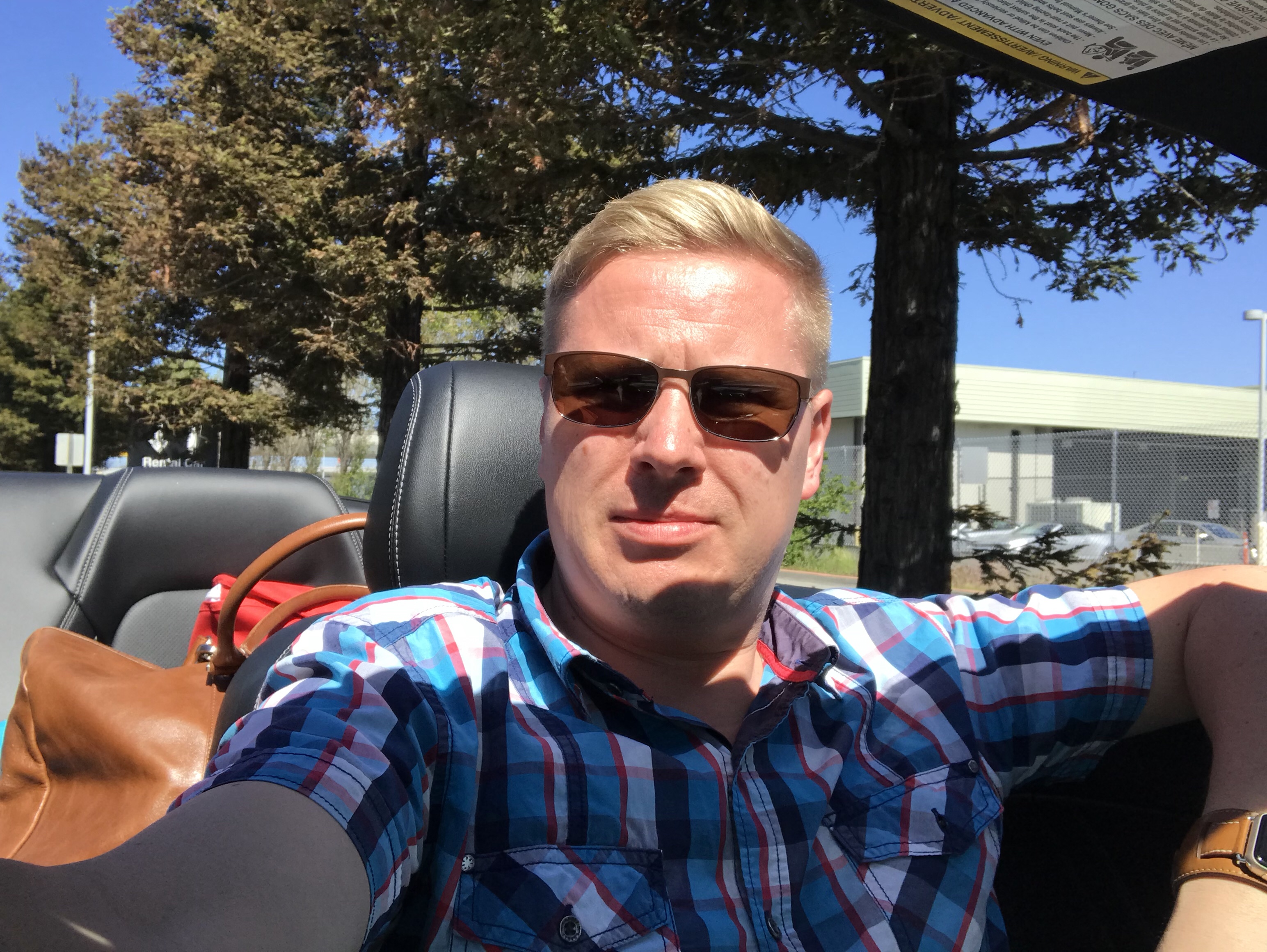 Auto palautettu ja kentällä. Nyt vain odotetaan koneen lähtöä joka on myöhässä.