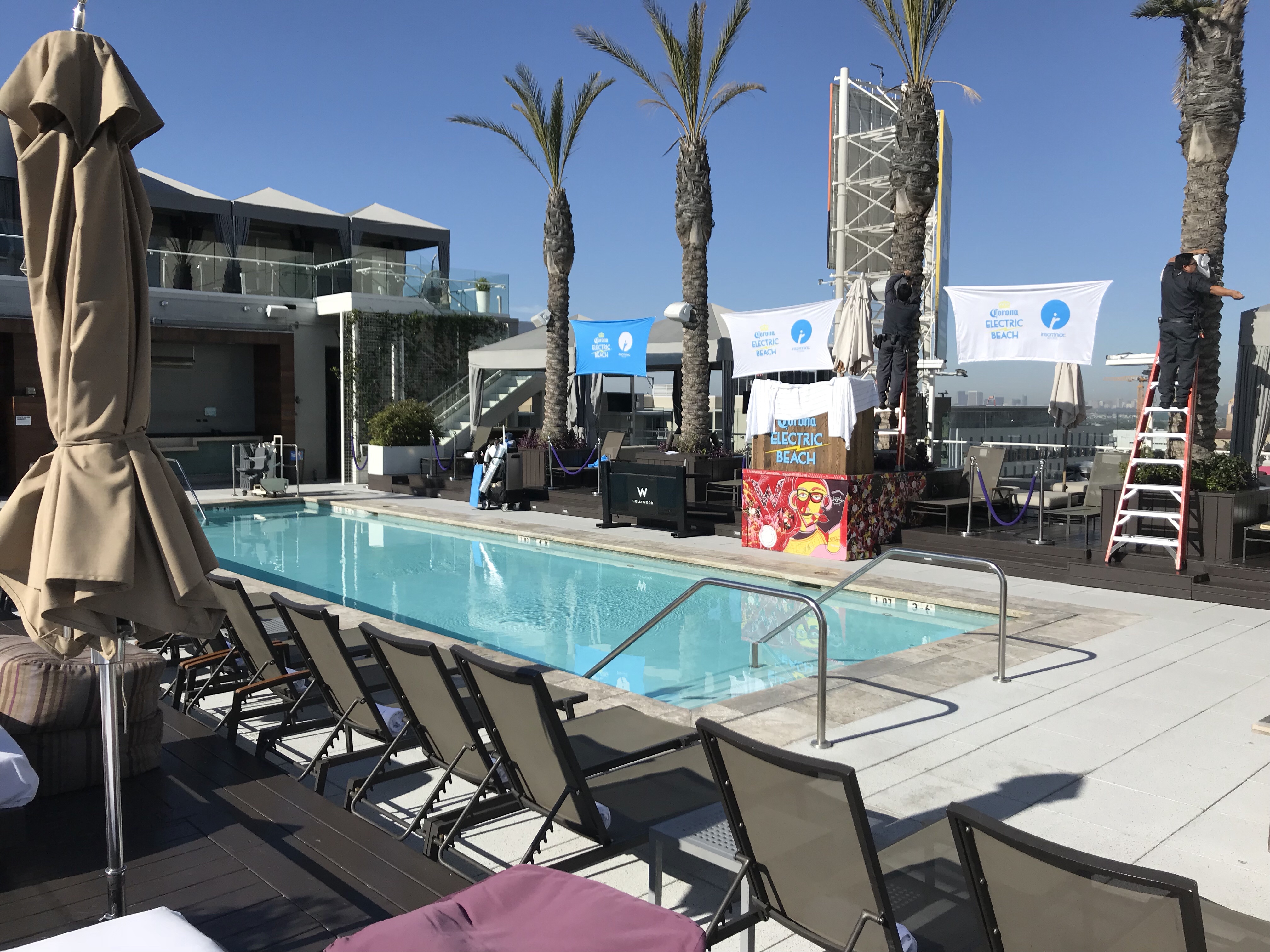 Ensin suunta top floor jossa uima-allas(12krs.). Tarkoitus käydä reissun jälkeen uimassa. Nyt matka kohti autoa Starbuck:n kautta ja suunta observariota kohti josta näkee ”kylän” ja Hollywood-kyltin.