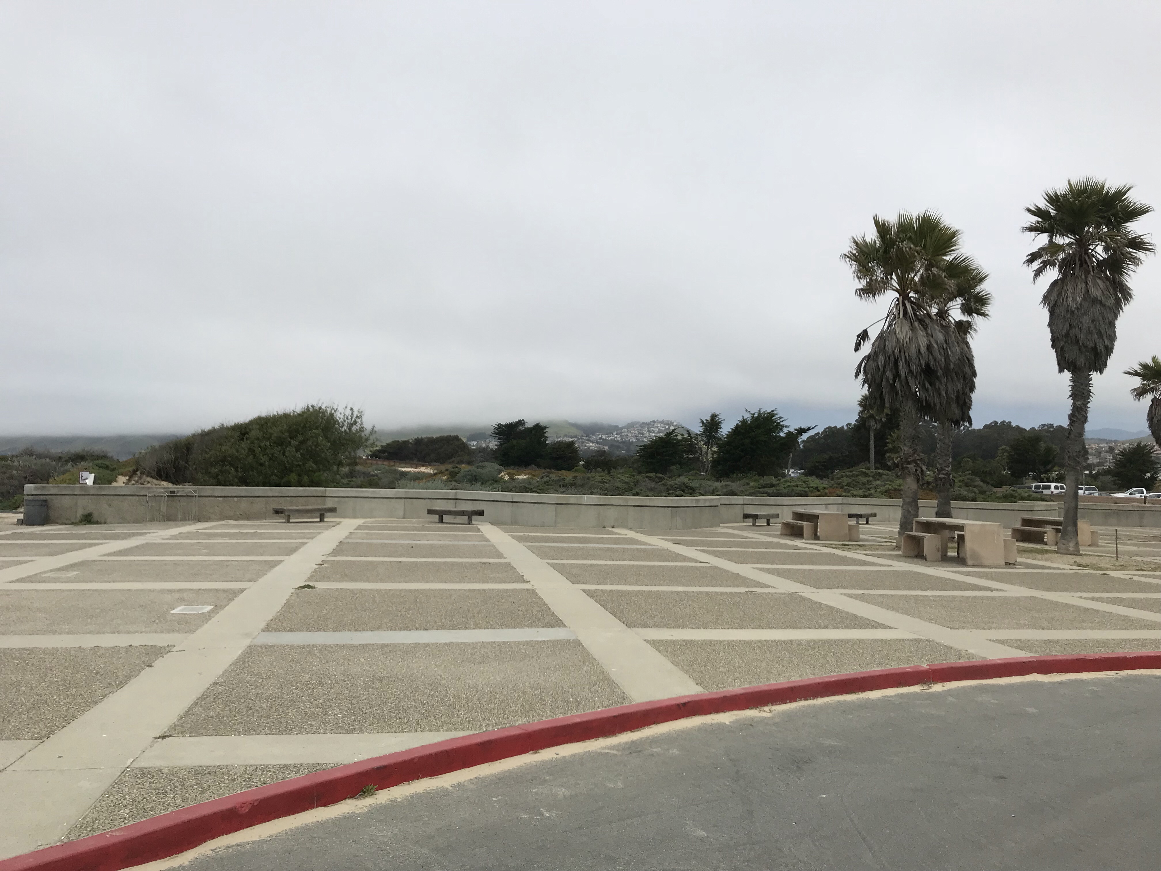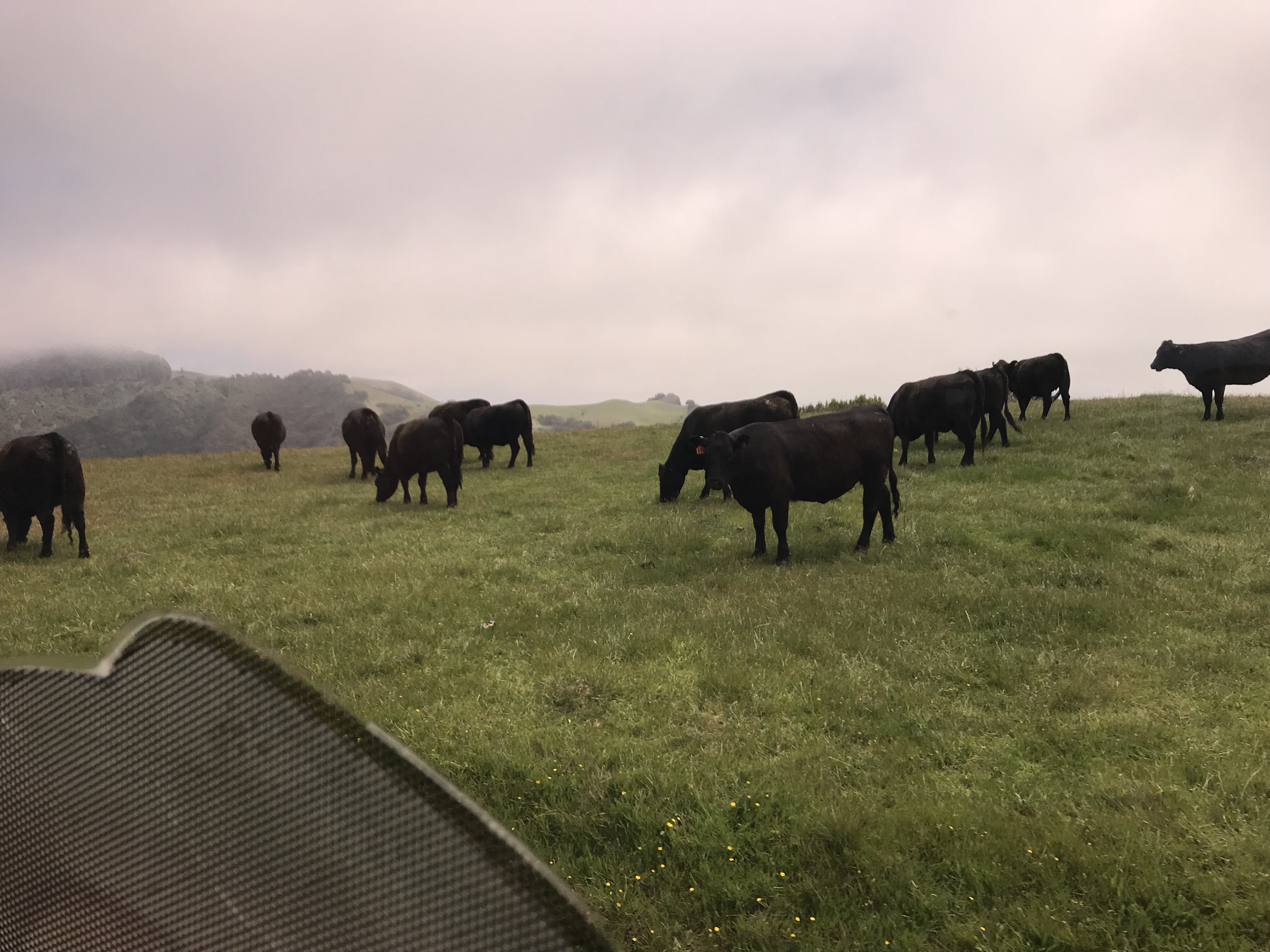 Aamu valkeni sumuisena ja kylmänä. Huomaa että on tultu jo pohjoiseen LA:sta jossa aamut alkoi aurinkoisena ja lämpiminä.
