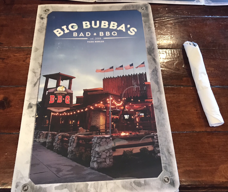 Ja nälkähän siellä mökkiä kiertäessä tuli joten BBQ:ta alkoi mieli tehdä. Joten ystävämme Google kertoi lähimmän ja hyvän paikan. Ja se sattui vielä matkan varrelle. Eli suunta kohti Paso Roblesia ja Big Bubba’S Bad BBQ:ta.