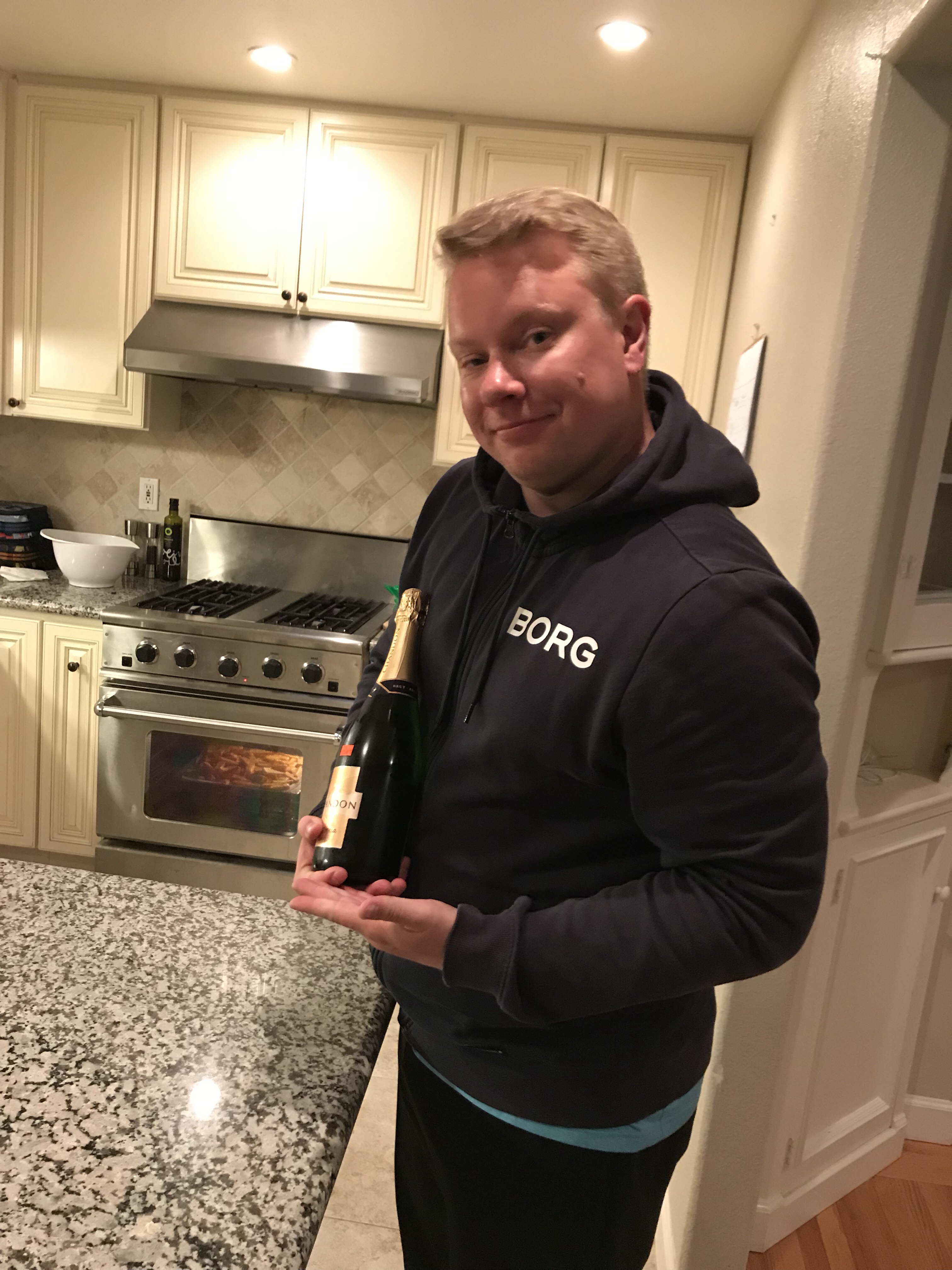 ”Sommelier” tarjoili valmistusvaiheessa hieman skumppaa.